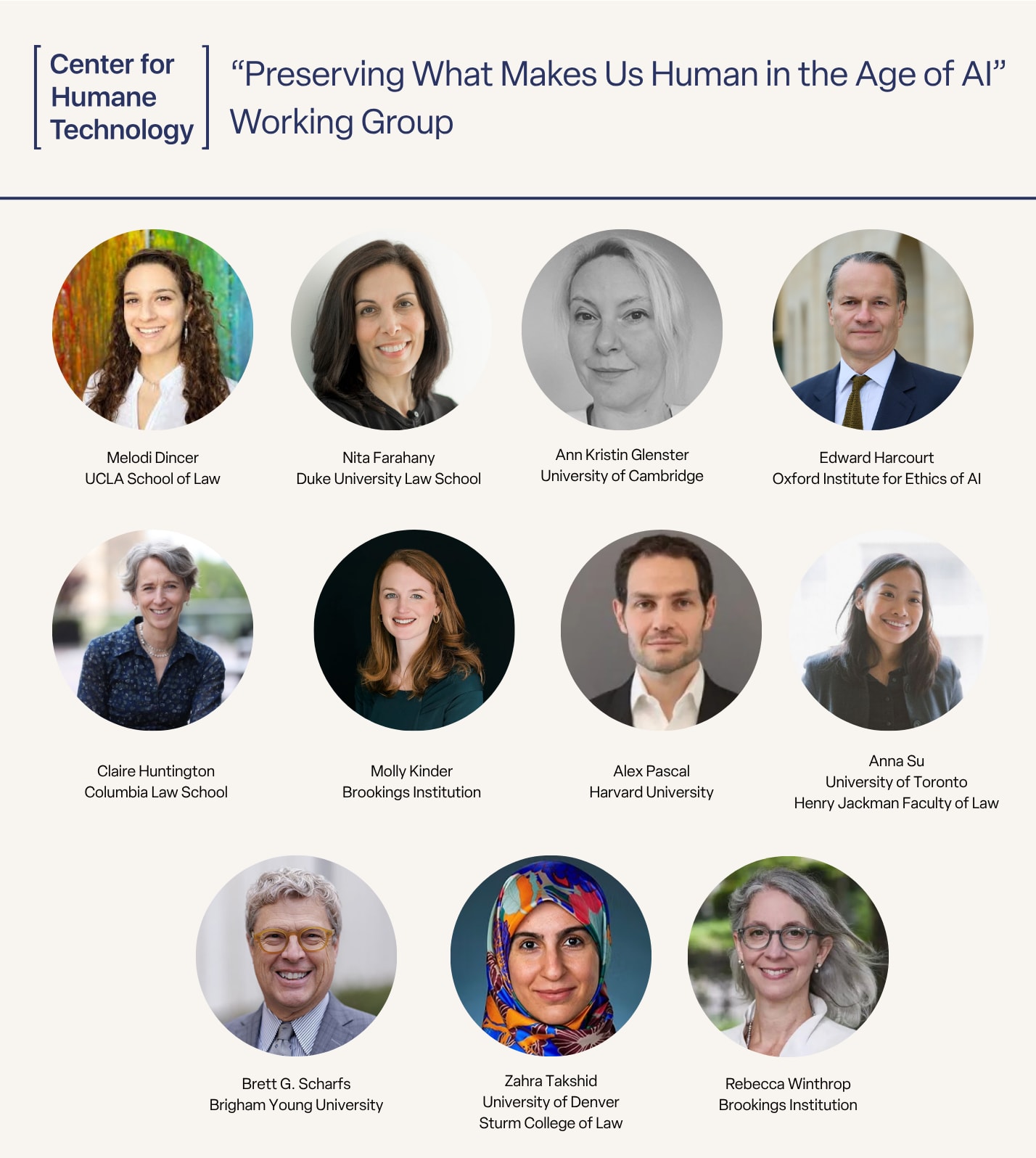 “AI poses new and novel challenges to our relationships, our cognitive abilities, our work, and even our sense of self,” our Senior Director of Strategy and Impact Camille Carlton said. “The Preserving What Makes Us Human in the Age of AI Working Group will move beyond passively admiring the AI problem to actively defining core principles for defending our humanity.”